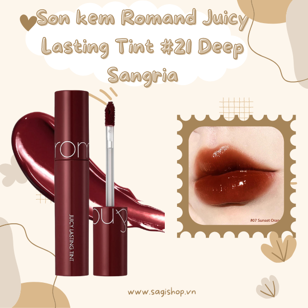 3. Son kem Romand Juicy Lasting Tint #21 Deep Sangria