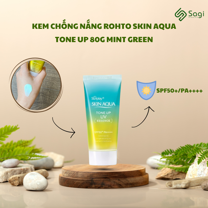 - Kem chống nắng ROHTO SKin Aqua Tone Up 80g Mint Green