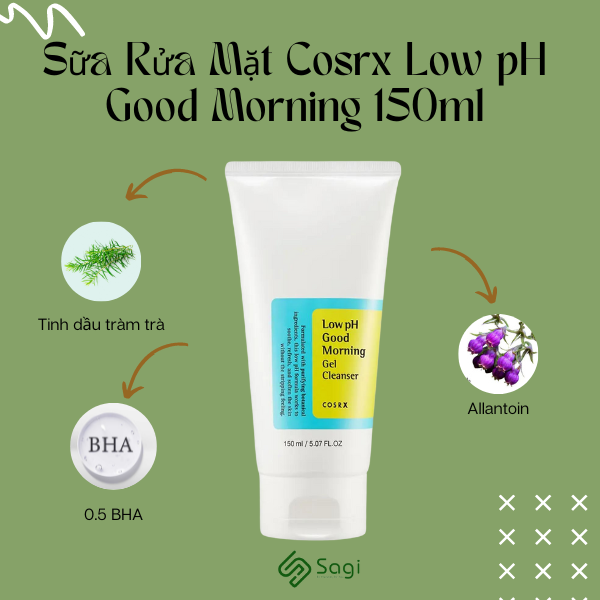 Sữa Rửa Mặt Dạng Gel Cosrx Low PH Good Morning Gel Cleanser là dòng sữa rửa mặt dịu nhẹ, thuộc thương hiệu Cosrx. Có độ pH gần như là làn da tự nhiên có khả năng làm sạch mà không gây khô căng da, dễ dàng làm sạch bụi bẩn, bã nhờn và lớp trang điểm, mang đến làn da sạch mịn, thông thoáng lỗ chân lông.