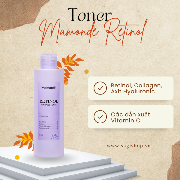 Toner được coi là một trong những bước quan trọng trong quá trình chăm sóc da. Chúng hỗ trợ làm dịu và mềm da sau bước làm sạch bằng sữa rửa mặt. Mamonde Retinol Ampoule Toner là chìa khóa cho những khuyết điểm đang có trên da. Với thành phần chính được rất nhiều người biết đến là retinol; kết hợp cùng với Hyaluronic Acid và Collagen thủy phân sẽ giúp cải thiện sắc tố da, cung cấp độ ẩm và đẩy lùi các tác nhân gây lão hóa.
