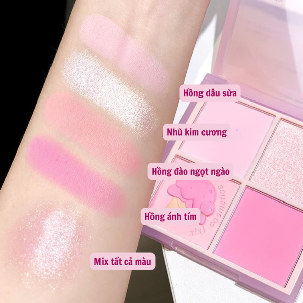 Bảng phấn má 4 màu XIXI với thiết kế xinh xắn cùng chất phấn mềm mịn, bám màu, lâu trôi, lên màu chuẩn tự nhiên giúp khuôn mặt hồng hào tự nhiên siêu xinh. Bộ sưu tập gồm 4 màu phù hợp với kiểu makeup đi học, đi làm, đi chơi...Đây còn là bảng mắt được mệnh danh là bảng dupe của nhà Dasyque.
